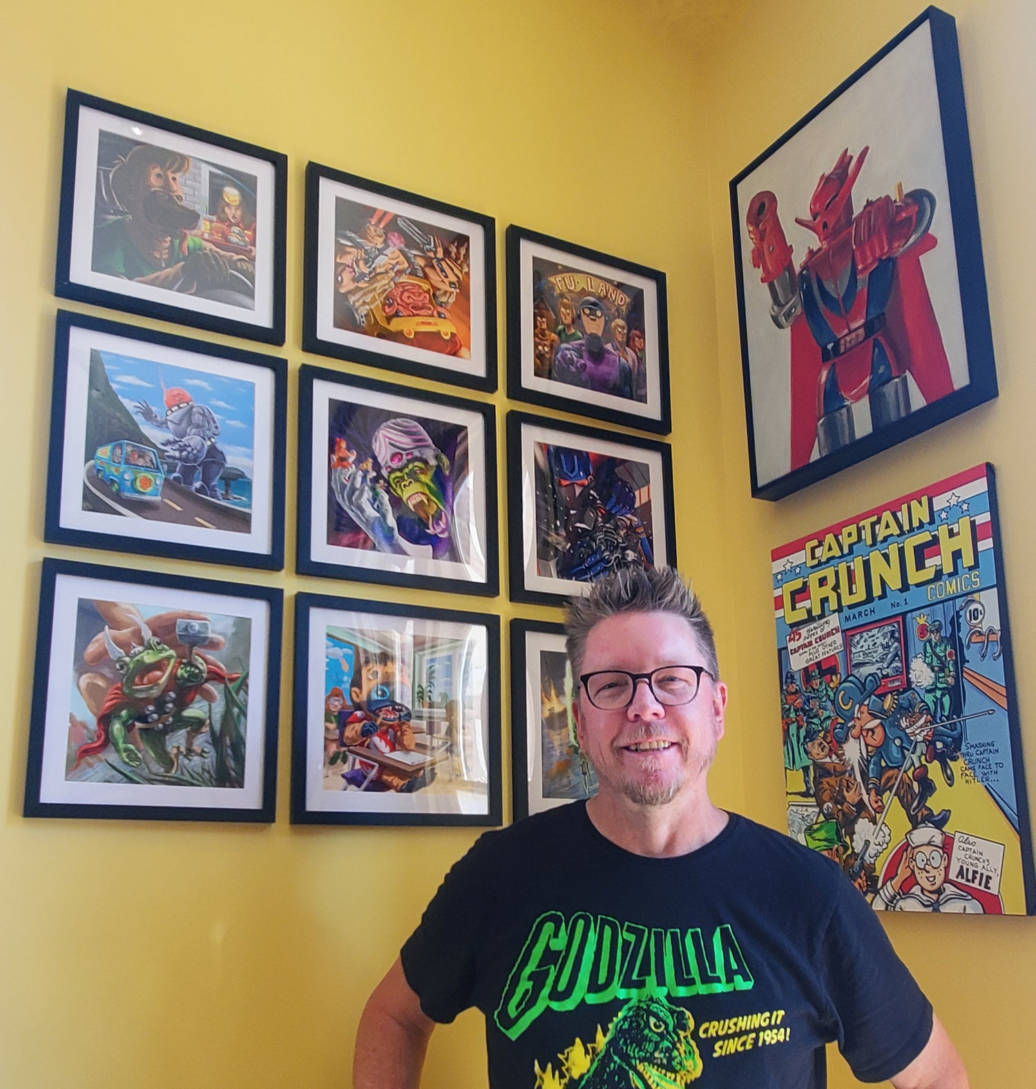 Meet Kyle La Fever — an Oil Painter and Digital Illustrator. His work weaves childhood nostalgia with humor, offering a unique artistic perspective. From beloved cartoon characters to obscure robot toys, Kyle's art forms a rich universe waiting for you to explore.