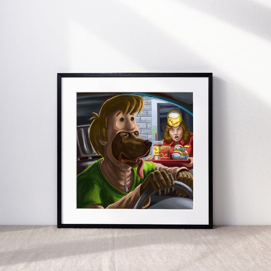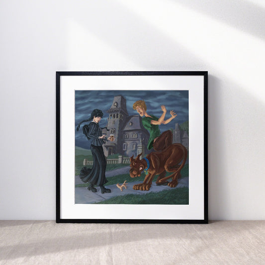 Wednesday and Thing meet Scooby-Doo and Shaggy Art Print