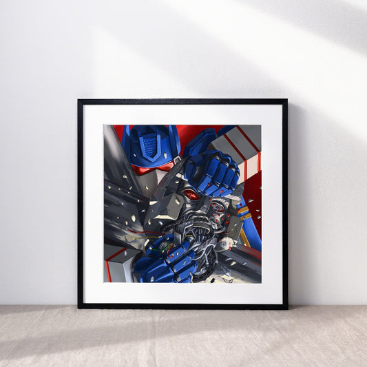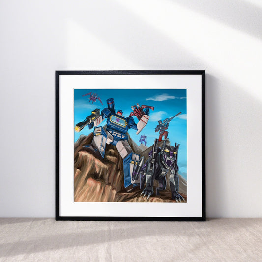 Megatron and Soundwave battle for the Decepticons Art Print
