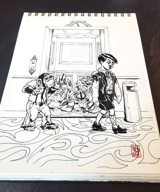 Number 5 and pogo from Umbrella Academy Ink Drawing