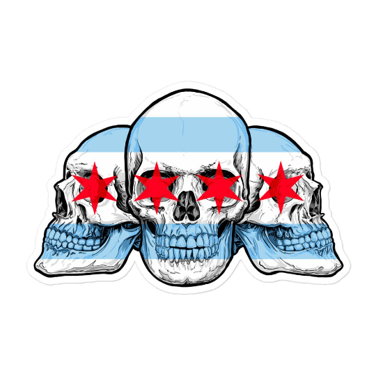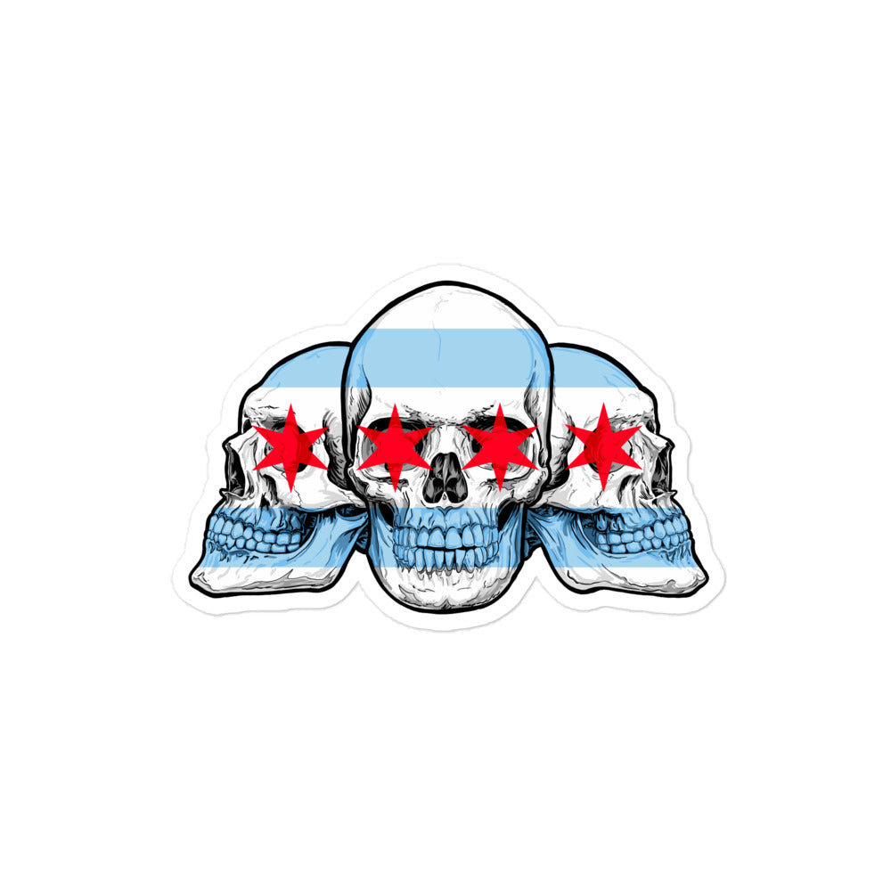 Chicago City Flag with Skull Flag Bubble-free stickers