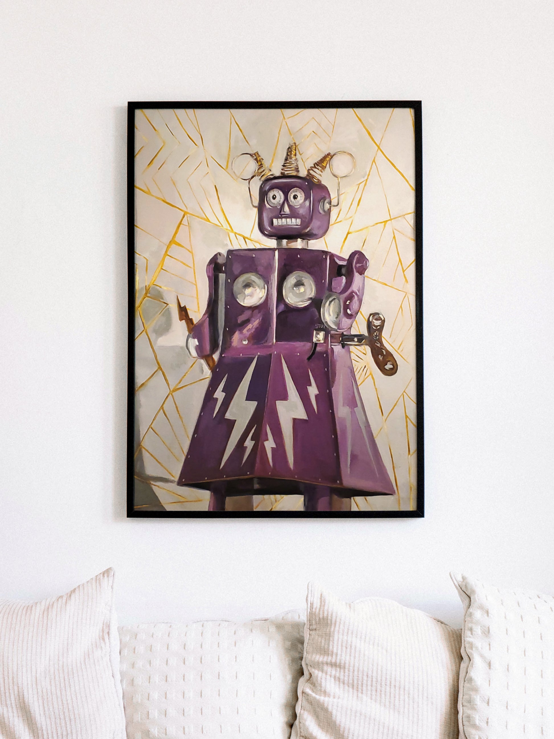 Beyond being Kyle's favored childhood companions, these robots symbolize a broader commentary on AI-generated art. In embracing the irony, Kyle created this series as a testament to the kind of AI art he envisions—artwork that humanizes robots, offering a unique perspective in contrast to AI creations simulating one of humanity's most inherently human pursuits: the creation of art.