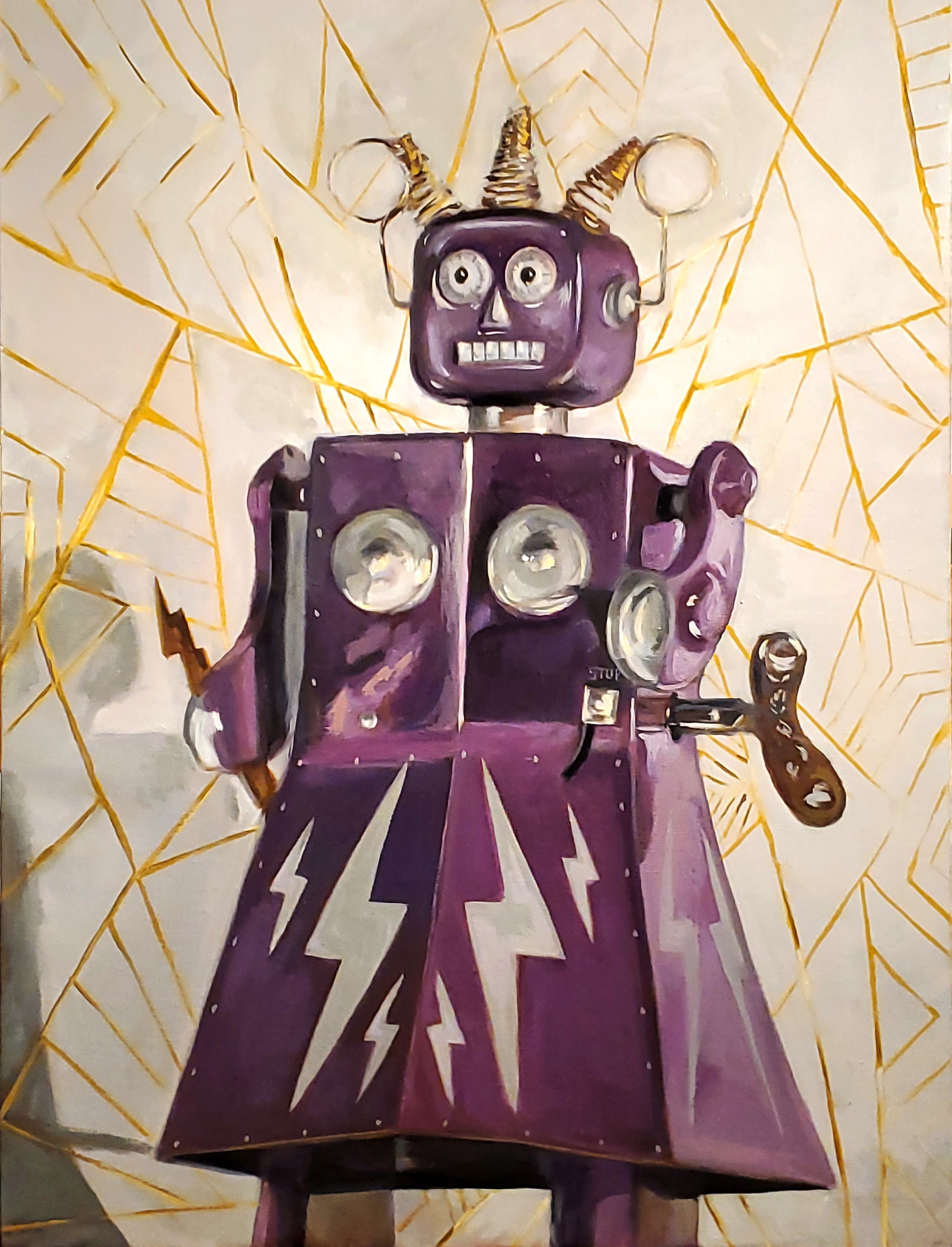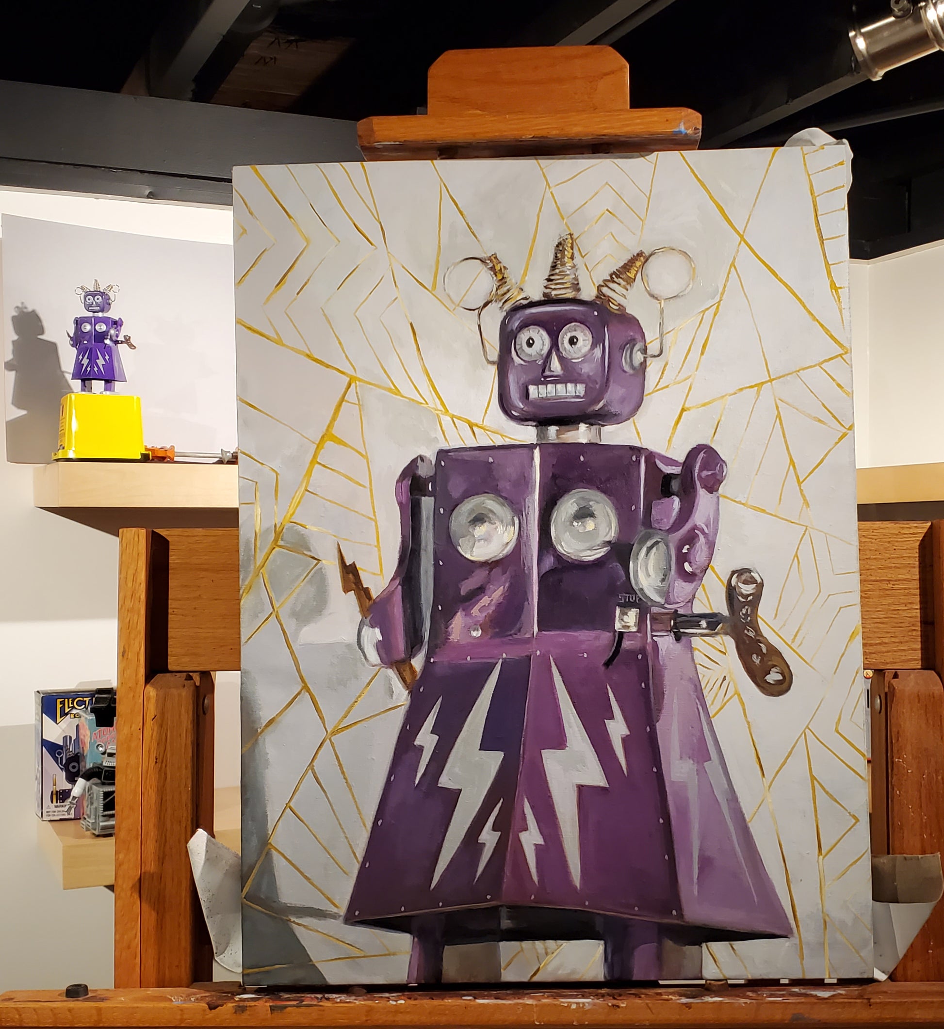 In an effort to elevate and humanize these robot toys, Kyle La Fever chose the classical art form of portraiture. Children perceived these toys as having lives of their own, and Kyle aims to immortalize this connection through a series of sincere portraits.