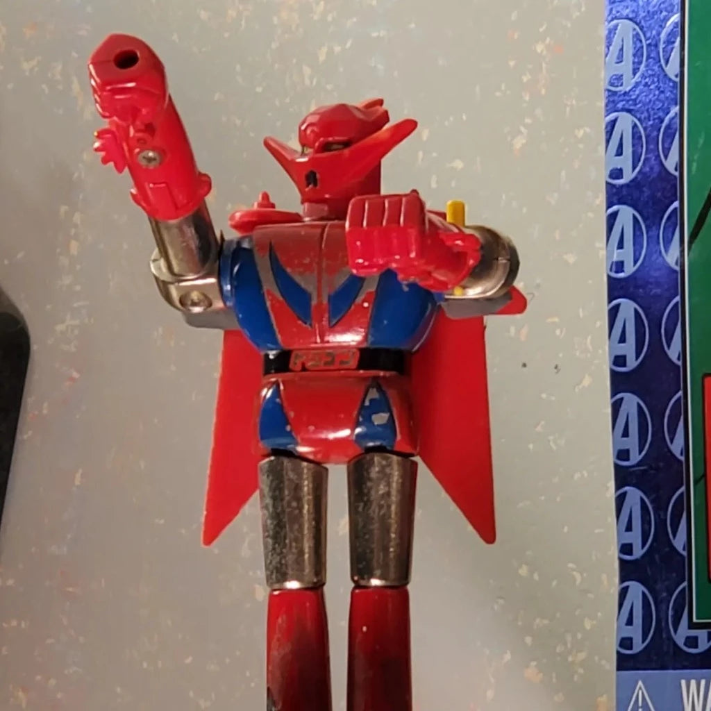 Red was Kyle's older brother's toy that he hardly got to play with. Red still has a fist that shors off, but there is an axe that is missing as accessories to beloved toys often art