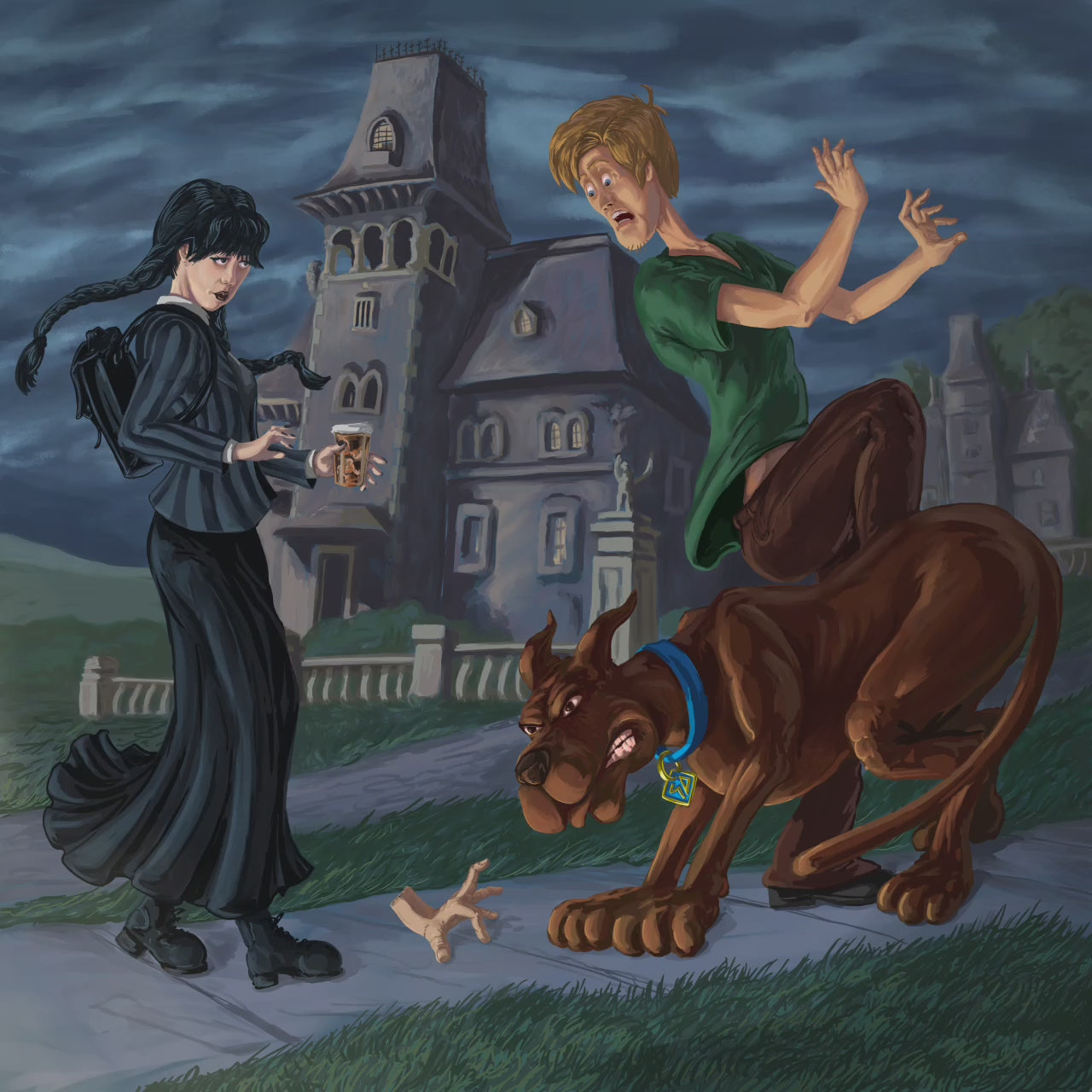 Wednesday and Thing meet Scooby-Doo and Shaggy T-Shirt